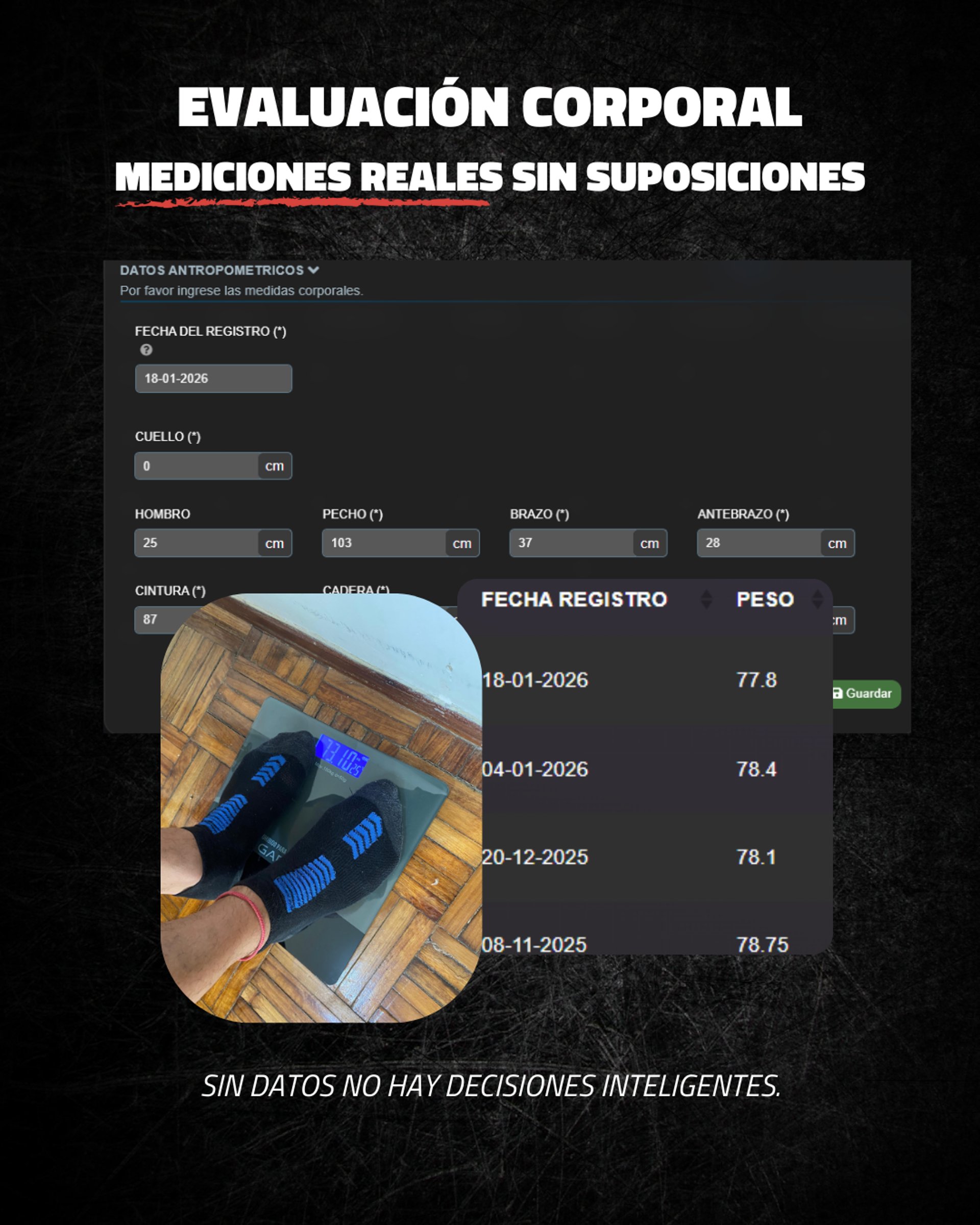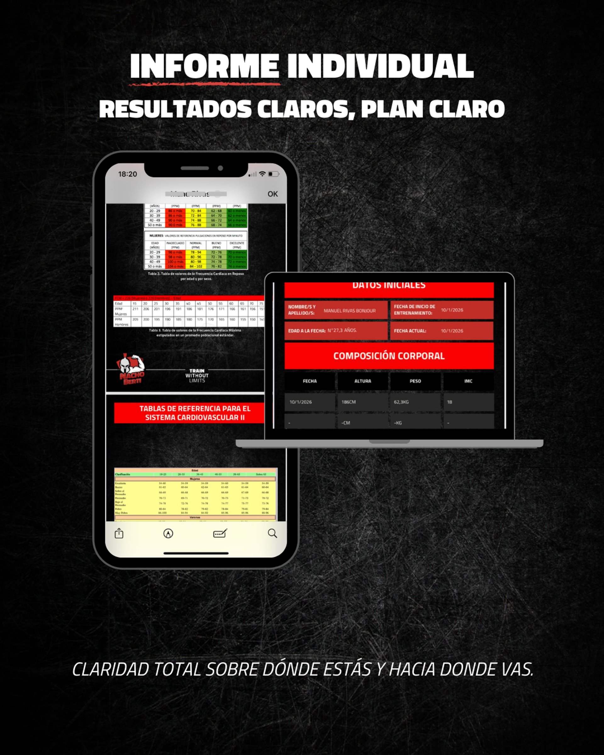 Realizamos las mediciones y tests necesarios (IMC, frecuencia cardíaca, evaluaciones corporales y específicas) para contar con datos reales desde el inicio.